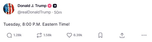 Он намекает, что если до 20:00 вторника (03:00 среда по Москве) Иран не примет соглашение, то США будут наносить новые удары.