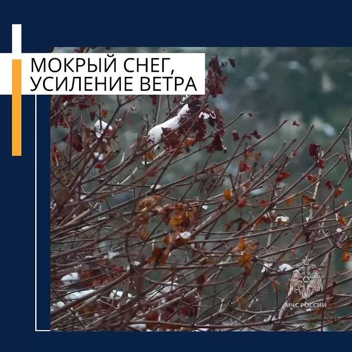 В период с 8:00 до 21:00 9 апреля ожидается отложение мокрого снега на проводах и деревьях, порывы ветра до 16 м/с