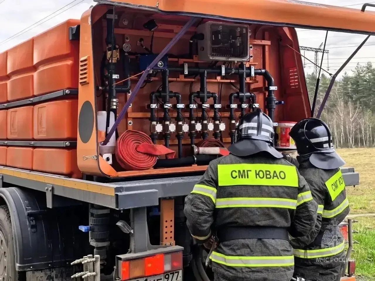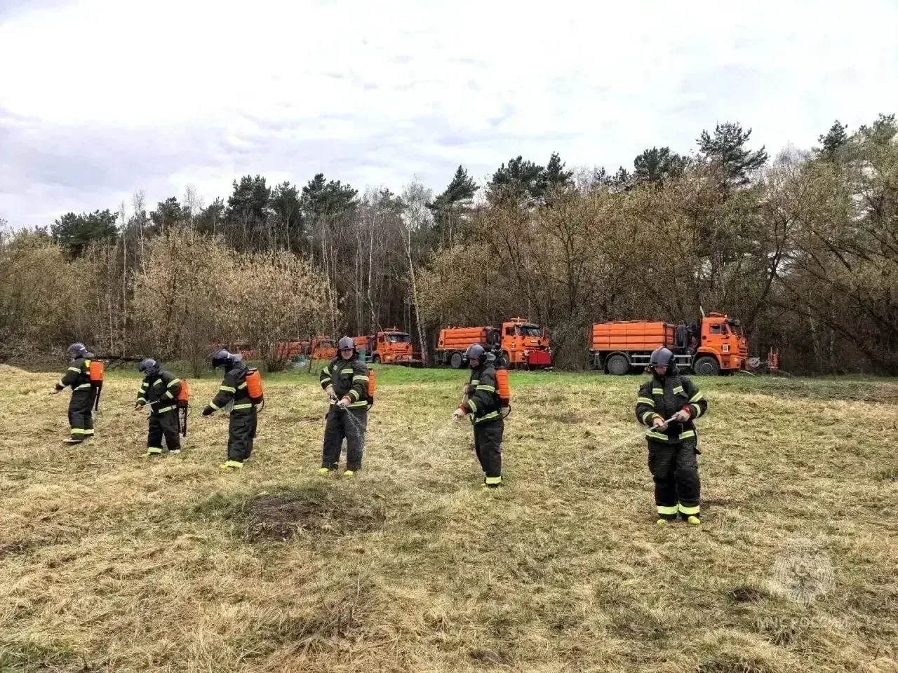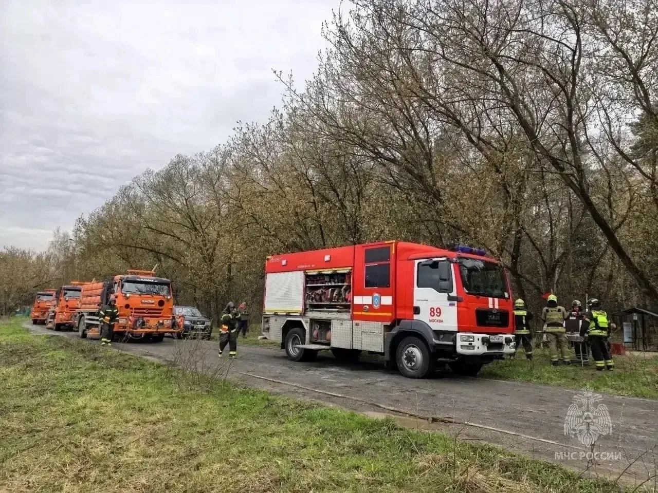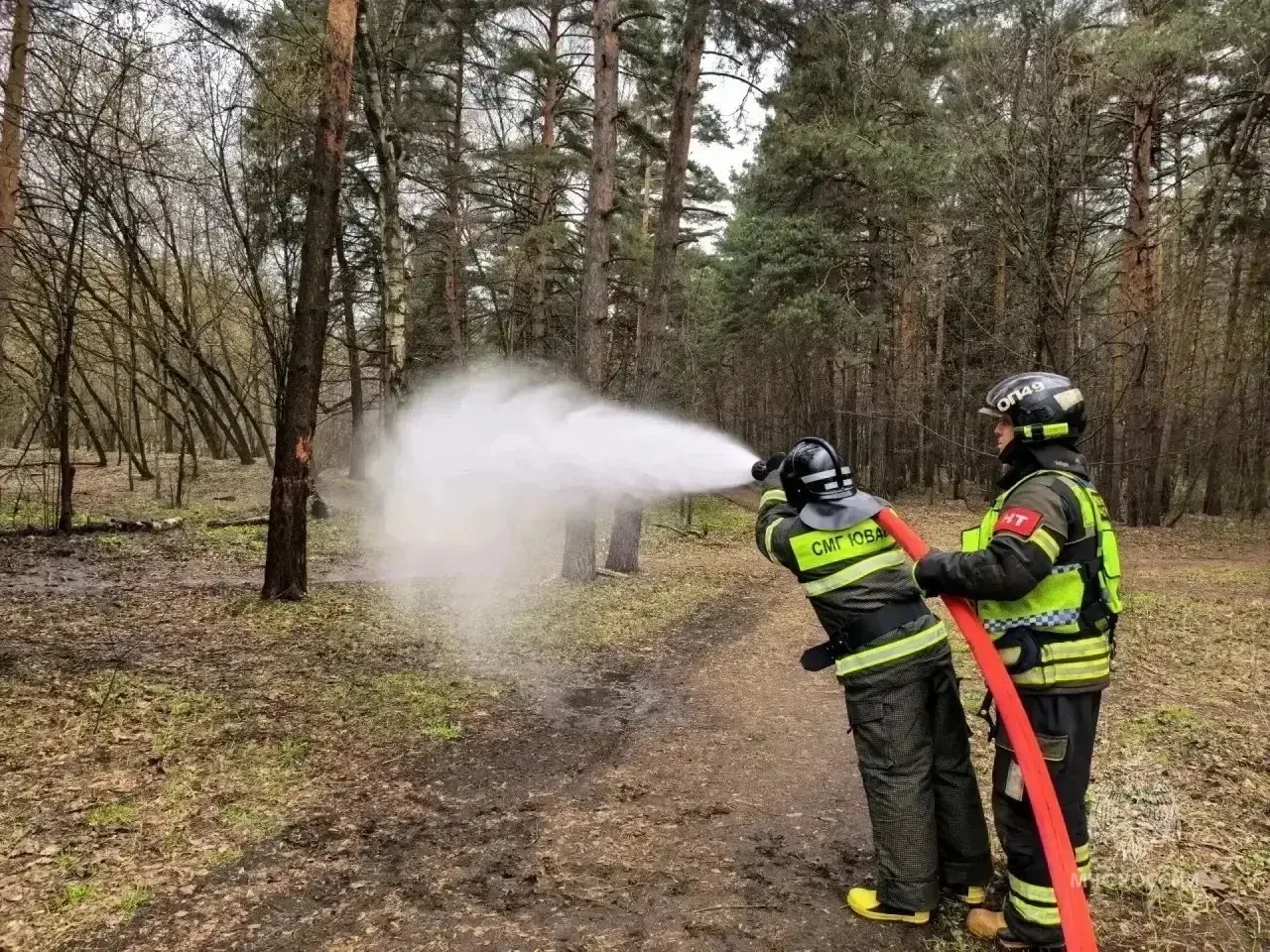 В одном из столичных лесопарков прошло пожарно-тактическое занятие по обнаружению и тушению условного возгорания сухой растительности.