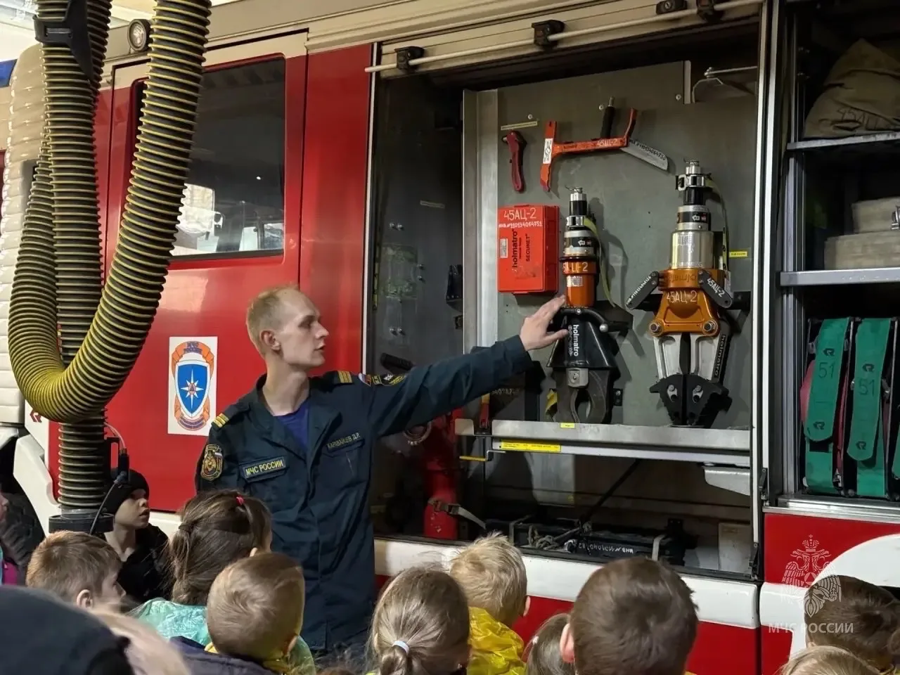 продемонстрировали работу пожарной техники и дали школьникам возможность поучаствовать;