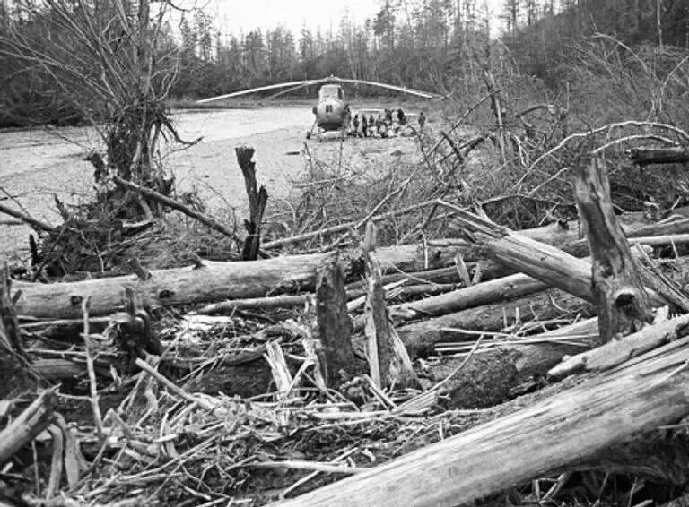Сахно поправляет рано седеющие волосы, кивает головой. Он ждет не писателей, а вертолет из Усть-Кута с какими-то документами. Ждет баржу. Ее арендовали для перевозки тяжелых механизмов. В какой-то момент словно из-под земли появляется высокий худой парень. Из-за его спины выглядывает застенчивая, тихая девушка. Парень откашливается, переступает с ноги на ногу. Говорит: «Петр Петрович, нам надо срочно улететь в Усть-Кут... С прорабом мы договорились...»