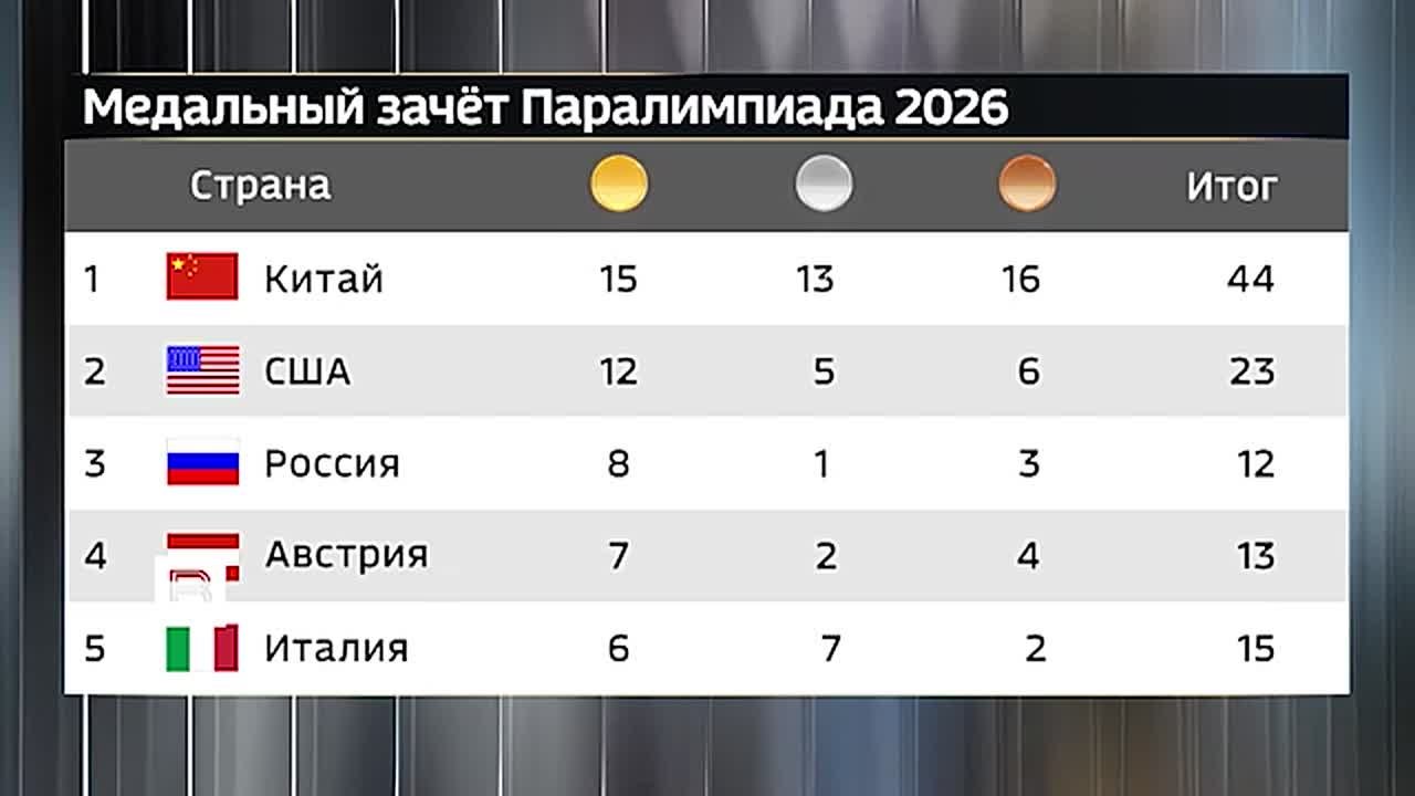 Сборная РФ заняла третье место в общем медальном зачете. Команда, представленная всего шестью спортсменами, завоевала 12 наград: 8 золотых, 1 серебряную и 3 бронзовые.