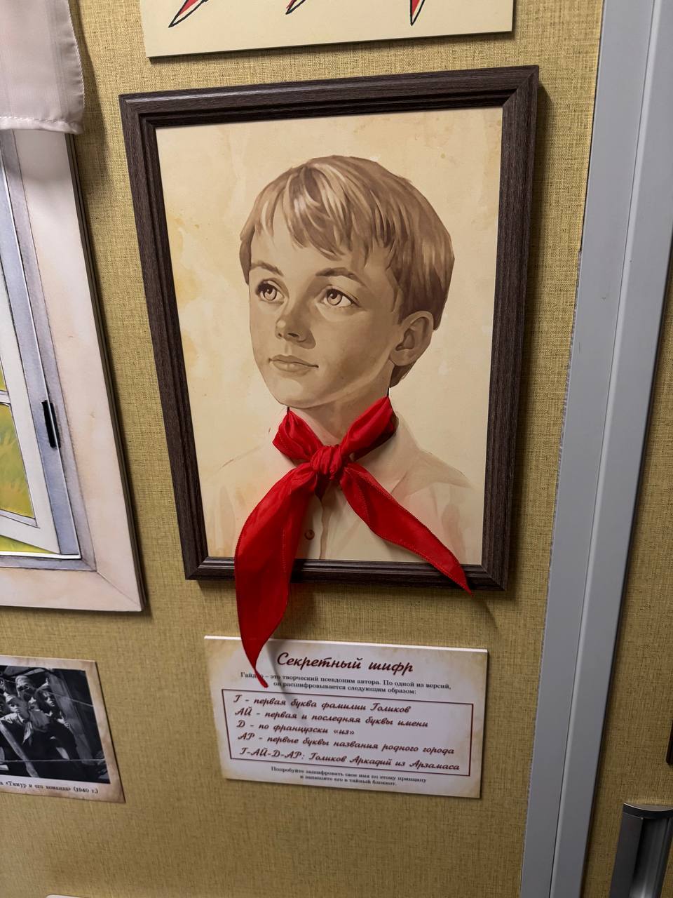 А в купе Аркадия Гайдара пассажирам предлагают найти записки из повести «Тимур и его команда» или научиться завязывать пионерский галстук.
