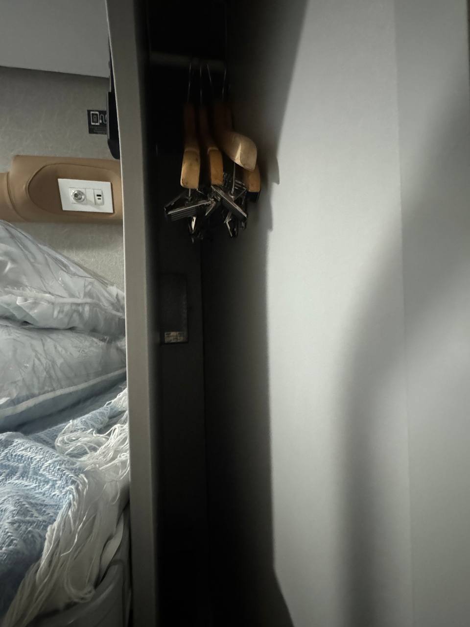 Для такого формата это выглядит непривычно... И ещё один момент, который не очень понравился. Я специально сфотографировал для вас отделение для верхней одежды – оно, честно говоря, очень узкое. Зимний пуховик туда просто никак не помещается.