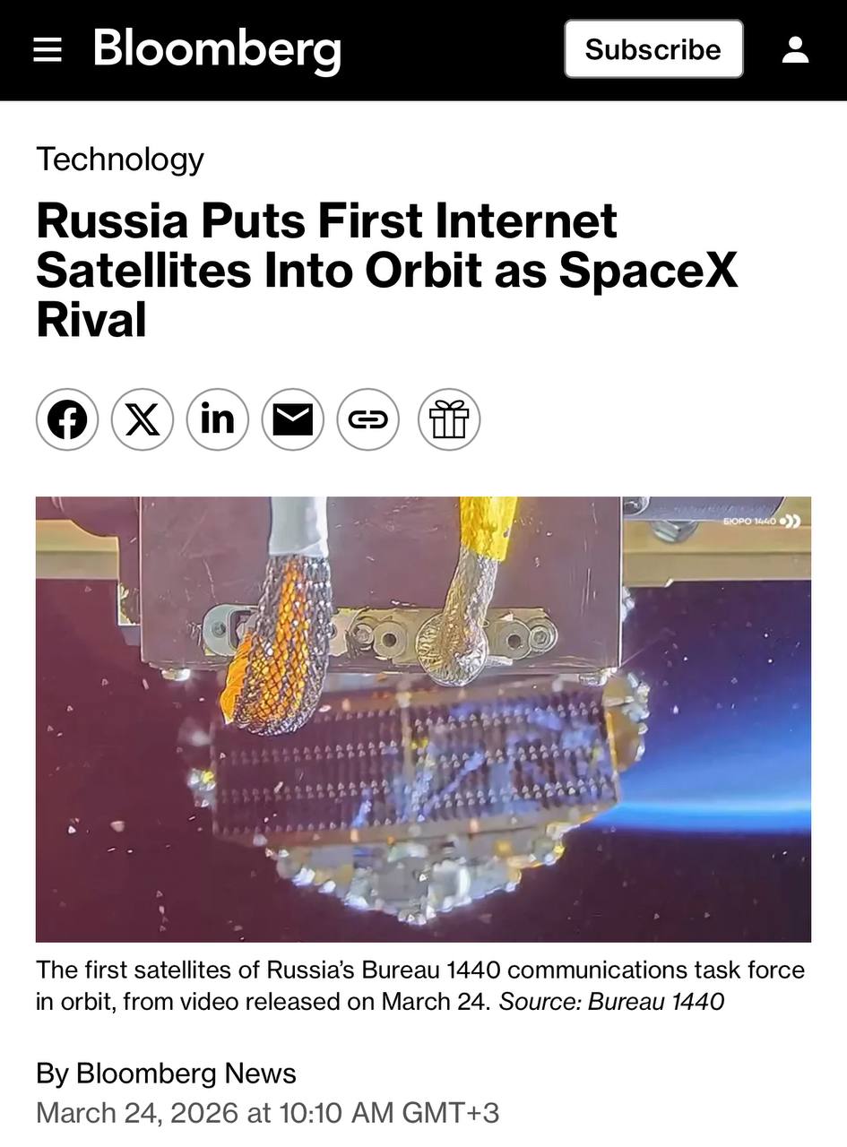 "Москва стремится создать суверенную сеть спутникового интернета, которая по своей концепции, хотя и не по масштабам, будет сравнима со Starlink", — отмечает издание.