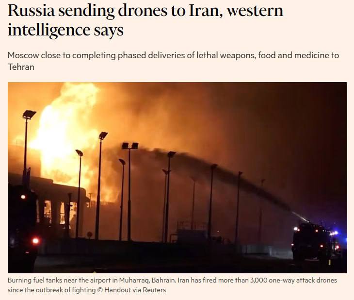 Как пишет Financial Times, если информация подтвердится, это станет первой известной «смертоноснойподдержкой» со стороны России в адрес Ирана с начала войны.