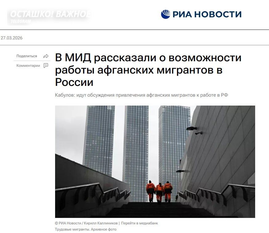 Посол Афганистана Хассан Гуль Хасан ранее говорил, что афганцев могут привлекать в сельское хозяйство. Сообщения об этом вызвали недовольство в российском обществе, но от идеи, видимо, не отказались и тайком обсуждают завоз афганских рабочих.