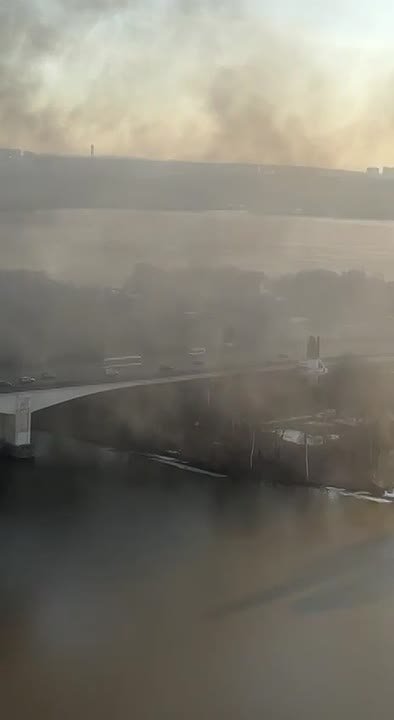 Площадь огня 30 «квадратов». Движение по Строгинскому мосту затруднено из-за дыма.