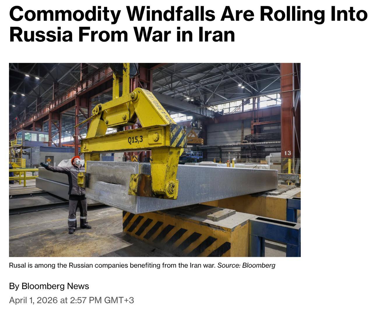Россия начала зарабатывать миллиарды долларов также от увеличения продаж газа, зерна, алюминия и удобрений, которые резко подорожали после начала конфликта.