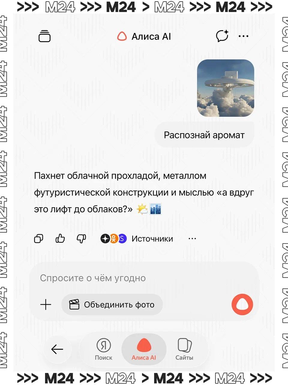 Чтобы протестировать функцию, пользователям предлагают загрузить в чат любое фото и нажать кнопку «Распознай аромат». Новая опция доступна в чате с Алисой AI.