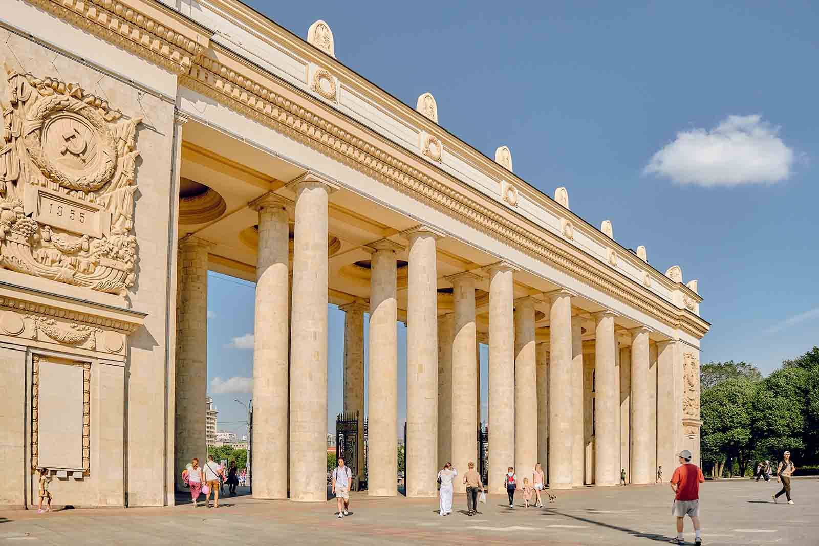 Фасады арки главного входа Парка Горького приведут в порядок. Работы уже начались. Специалисты расчистят поверхности, оштукатурят и окрасят фасады в исторический цвет.