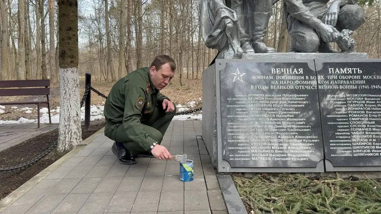 В этом месяце офицеры Главного военного следственного управления Следственного комитета Российской Федерации совместно с заместителем председателя региональной общественной организации «Ветераны военного следствия» полковником юстиции запаса Николаем Федоровичем Сидоровым прибыли в Наро-Фоминск, где организовали уборку воинского захоронения и почтили память тех, кто пал в боях за нашу независимость.