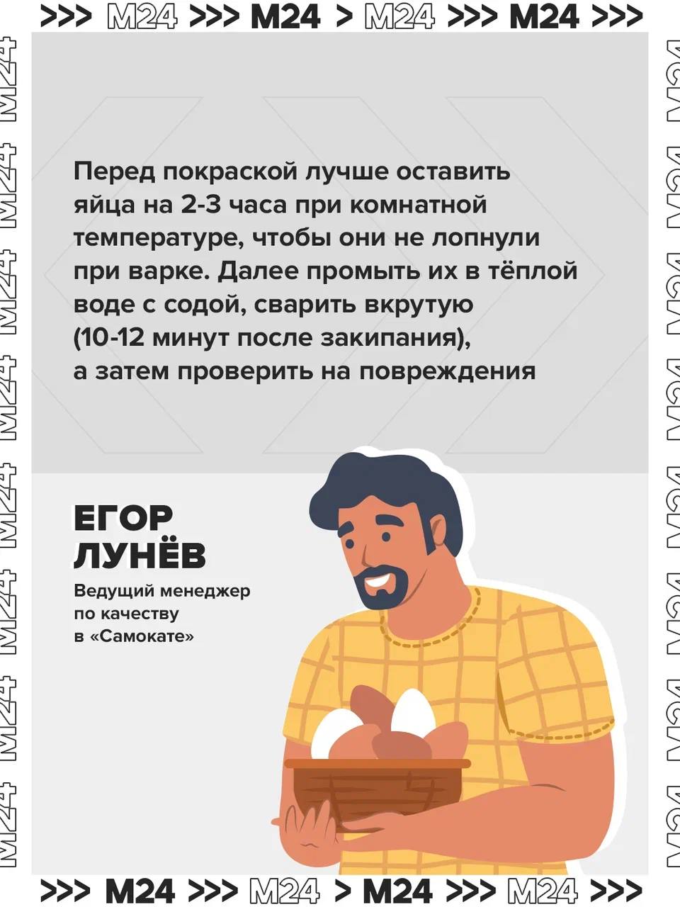 Как подобрать нужный сорт яиц, на что обратить внимание при выборе красителя и чем увлечь детей, чтобы приготовление к празднику не превратилось в сплошные хлопоты — расскажем в карточках