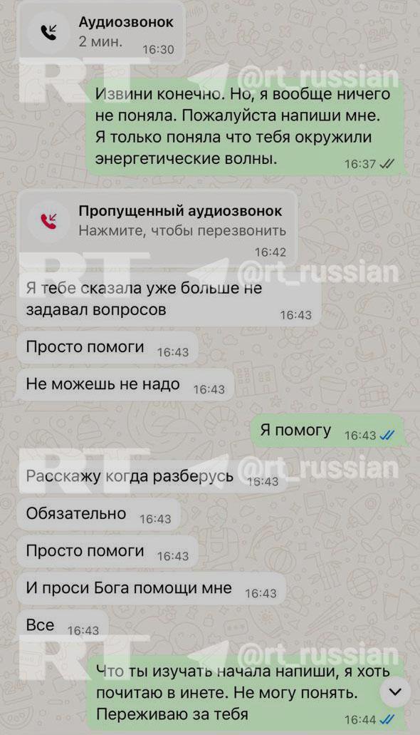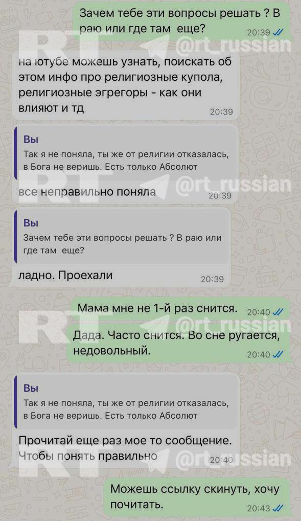 На скринах — переписка погибшей с сестрой незадолго до смерти. Нелли рассказывает про некие «религиозные эгрегоры» и просит помочь с деньгами.