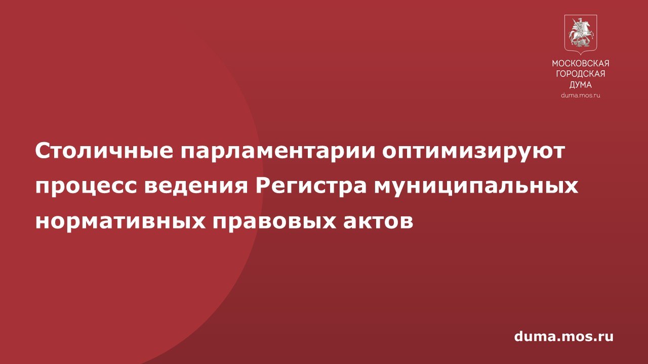Московская городская Дума приняла Закон города Москвы «О внесении изменений в Закон города Москвы от 22 октября 2008 года №49 «О порядке ведения Регистра муниципальных нормативных правовых актов города Москвы».