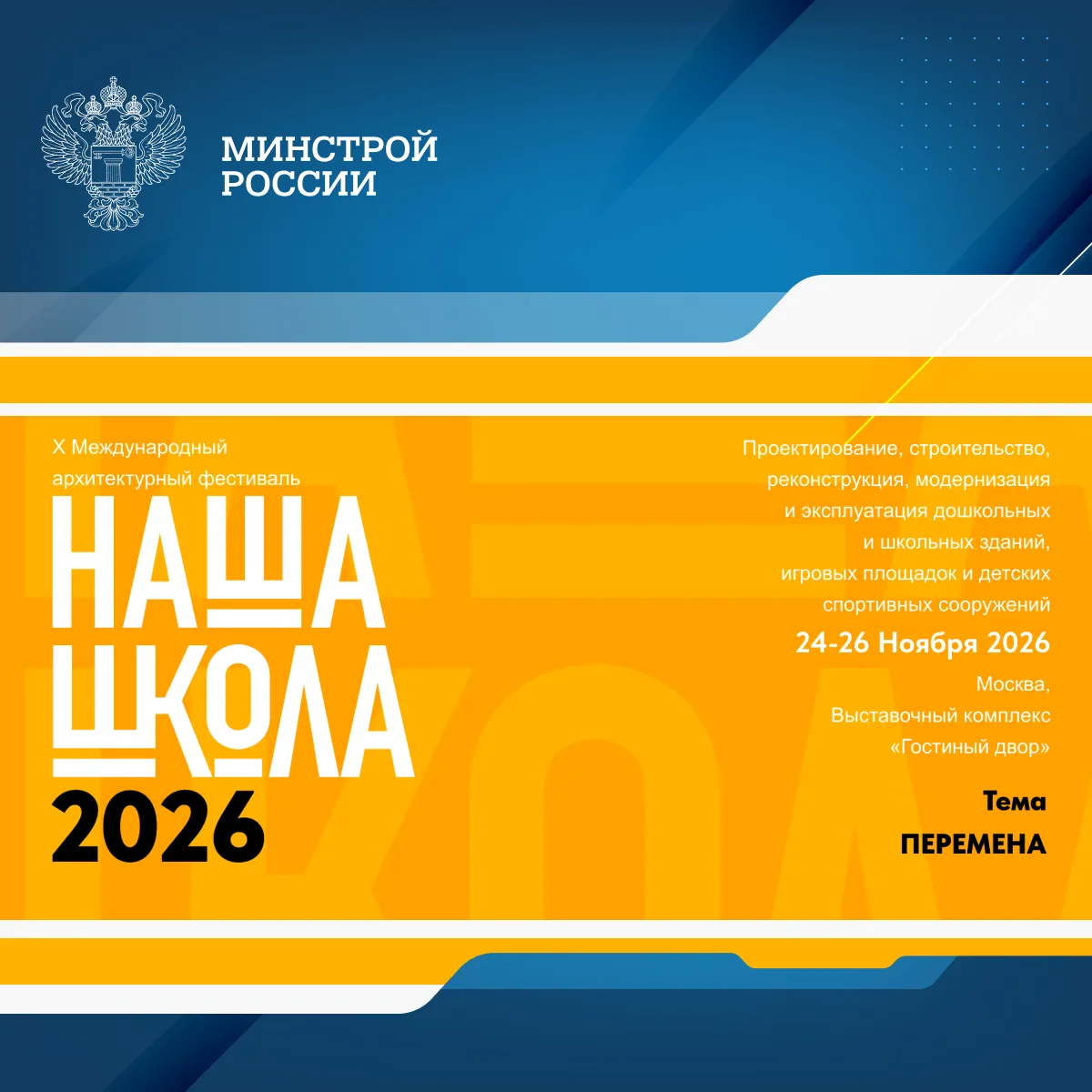 Союз московских архитекторов при поддержке Союза архитекторов России, Минстроя России, Минпросвещения России и Правительства Москвы — приглашают профессиональное сообщество к участию в юбилейном X Международном архитектурном фестивале «НАША ШКОЛА».
