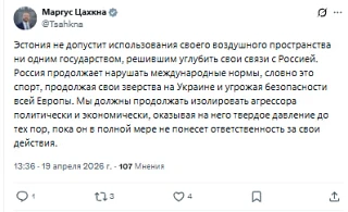 Маргус Цахкна прокомментировал решение о запрете пролета над Эстонией для премьера Словакии Роберта Фицо, который посетит парад 9 мая в Москве.