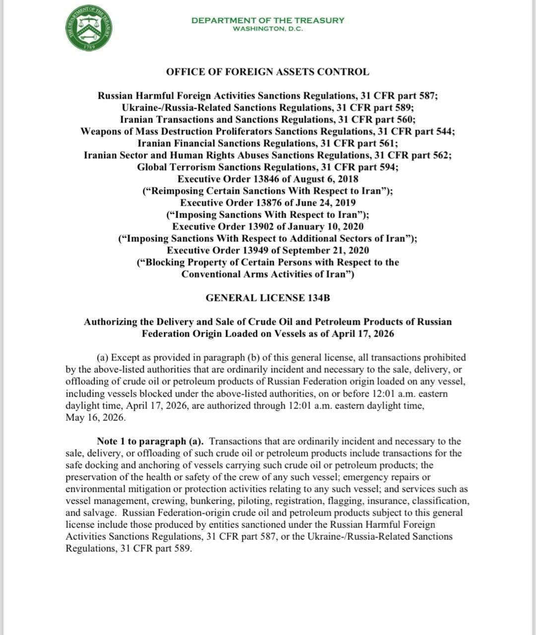 Возможно, пауза с приостановкой санкций была заранее согласована Москвой и Вашингтоном, чтоб россияне могли до 17 апреля вывести больше танкеров в море.