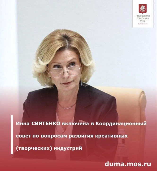 Заместитель Председателя Совета Федерации ФС РФ, представитель МГД в Совете Федерации ФС РФ Инна Святенко (фракция партии «Единая Россия») включена в состав Координационного совета по вопросам развития креативных (творческих) индустрий