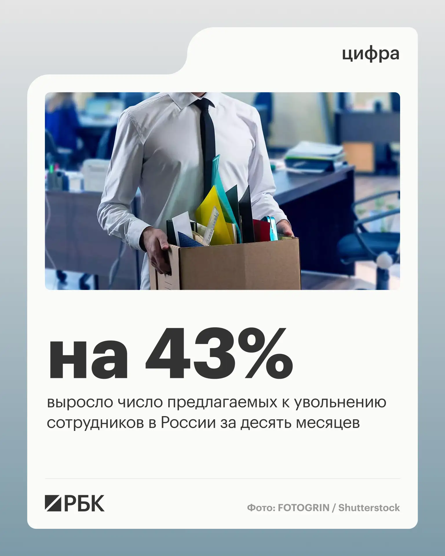 Как пишут «Ведомости», в марте текущего года число предполагаемых к увольнению работников составляло 104 775 человек, в феврале — 100 397, а в июне прошлого года — 73 572 человека. Таким образом, за десять месяцев этот показатель вырос на 43%.