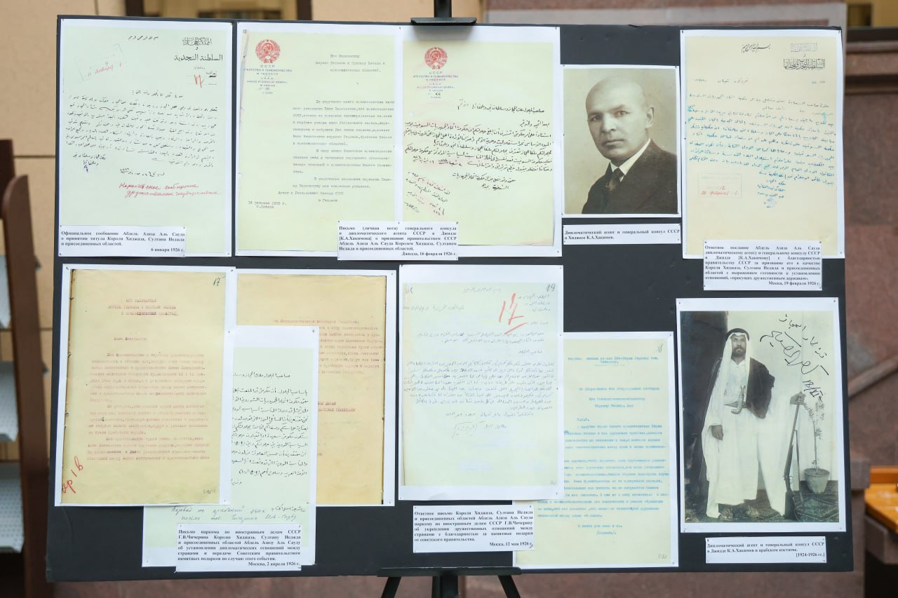 27 апреля в МИД России заместитель Министра иностранных дел Российской Федерации Г.Е.Борисенко открыл выставку, посвящённую 100-летию установления дипломатических отношений с Саудовской Аравией (19 февраля 1926 года).