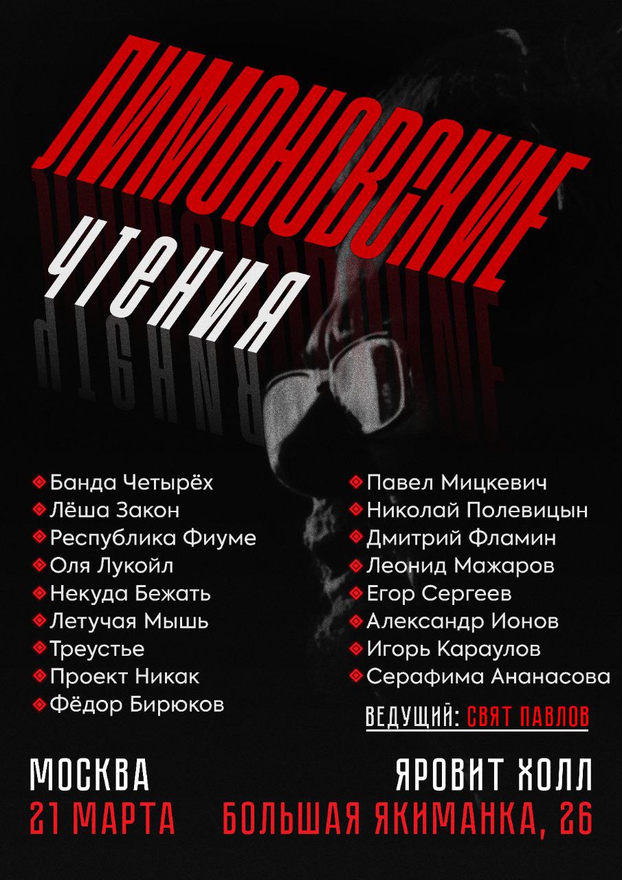 "Лимоновских чтения" в Москве стартуют уже в эту субботу (21 марта).