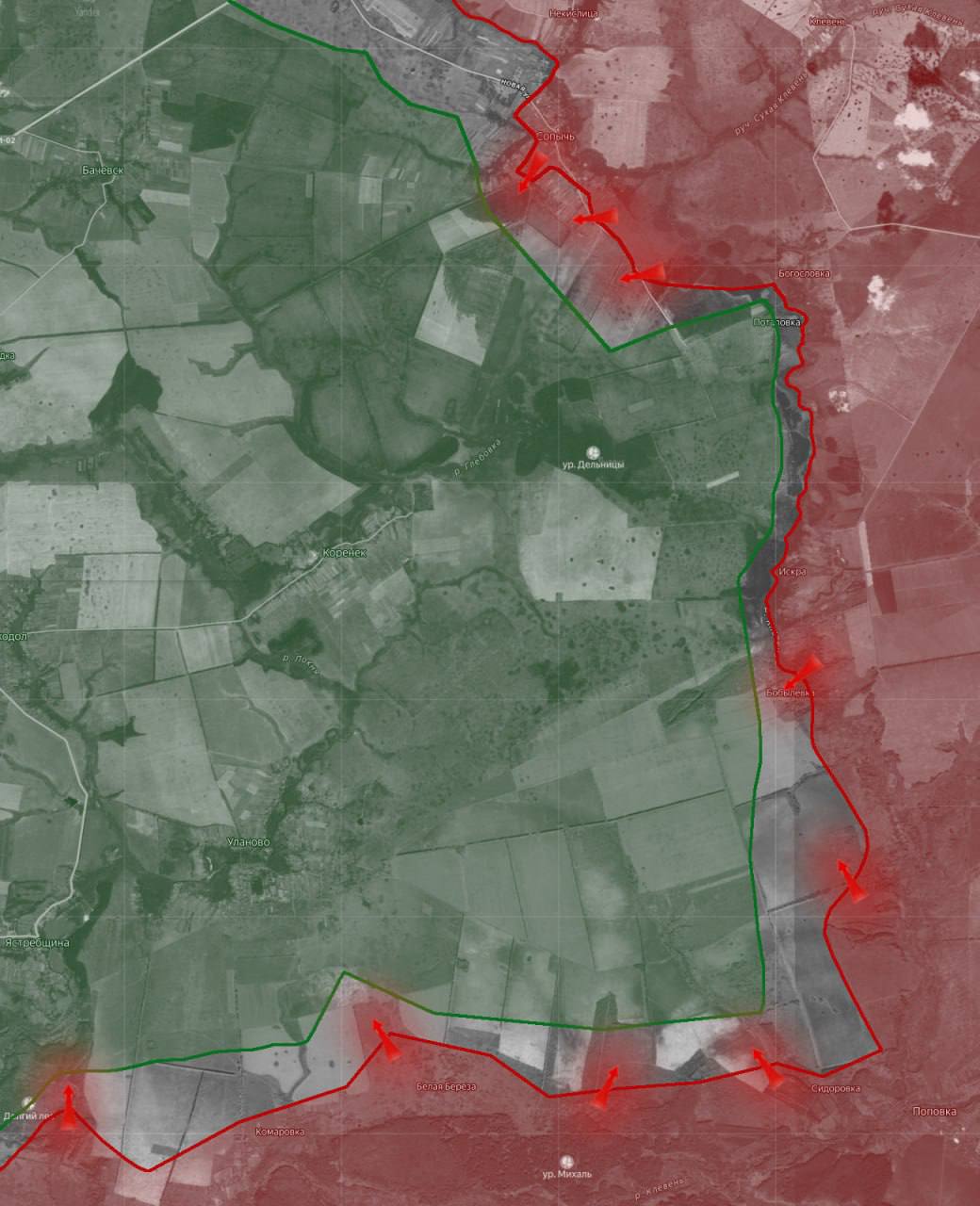 «На Сумском направлении российские войска захватили населенный пункт Сопычь. ВСУ активно контратаковали, в том числе на бронетехнике, но безрезультатно.