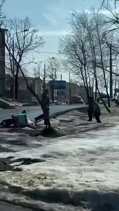 Один из инспекторов бросился ловить доставщика бегом и, настигнув, толкнул его вместе со скутером – заказ Ozon fresh разлетелся по снегу.