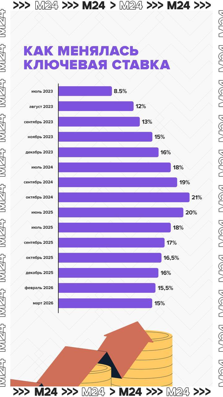 Банк России понизил ключевую ставку с 15,5% до 15% годовых.