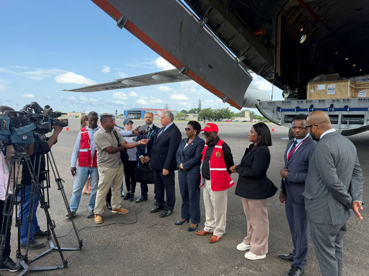 На специально организованной в аэропорту Мапуту церемонии передачи гуманитарного груза с участием журналистов ведущих СМИ РМ выступили Посол Российской Федерации в Мозамбике В.Н.Тараров, Государственный секретарь по иностранным делам и мозамбикской диаспоре за рубежом М.Мансу, Вице-президент Института Чрезвычайных ситуаций РМ Б.Монтейру и старшая группы МЧС, сопровождавшей груз, О.В.Ермола.