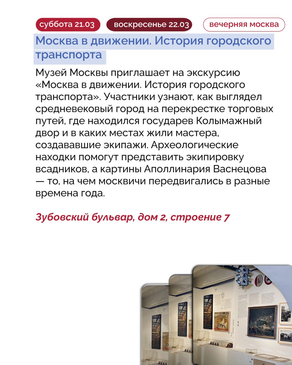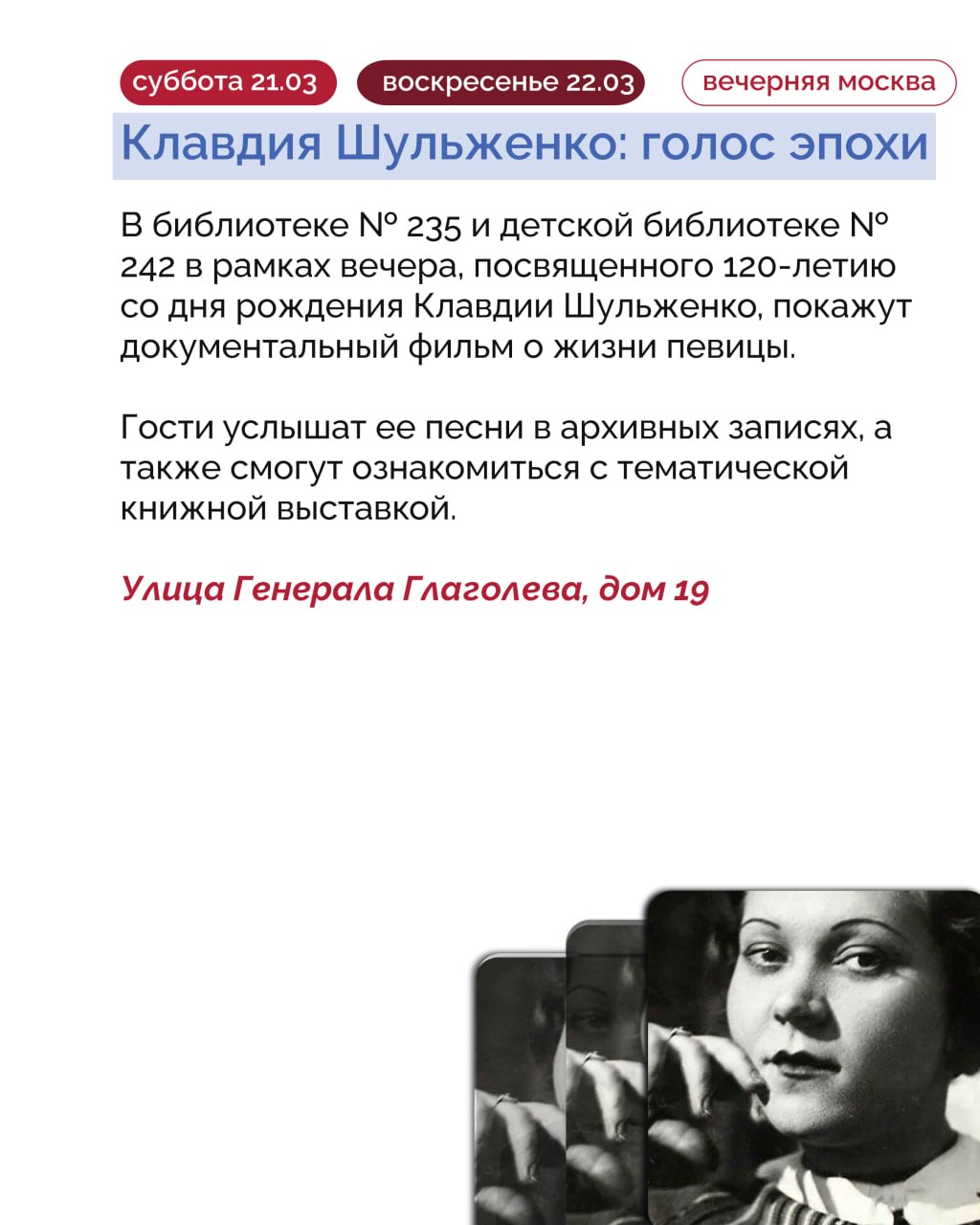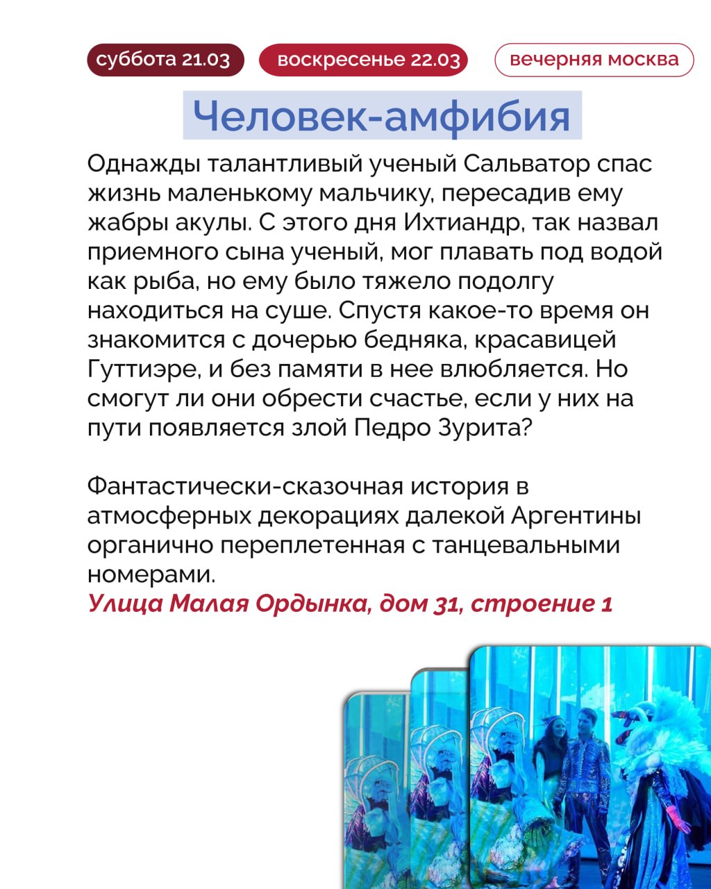Лучше узнать историю столичного транспорта, посетить вечер, посвященный великой Клавдии Шульженко, или сходить на спектакль «Человек-амфибия»?