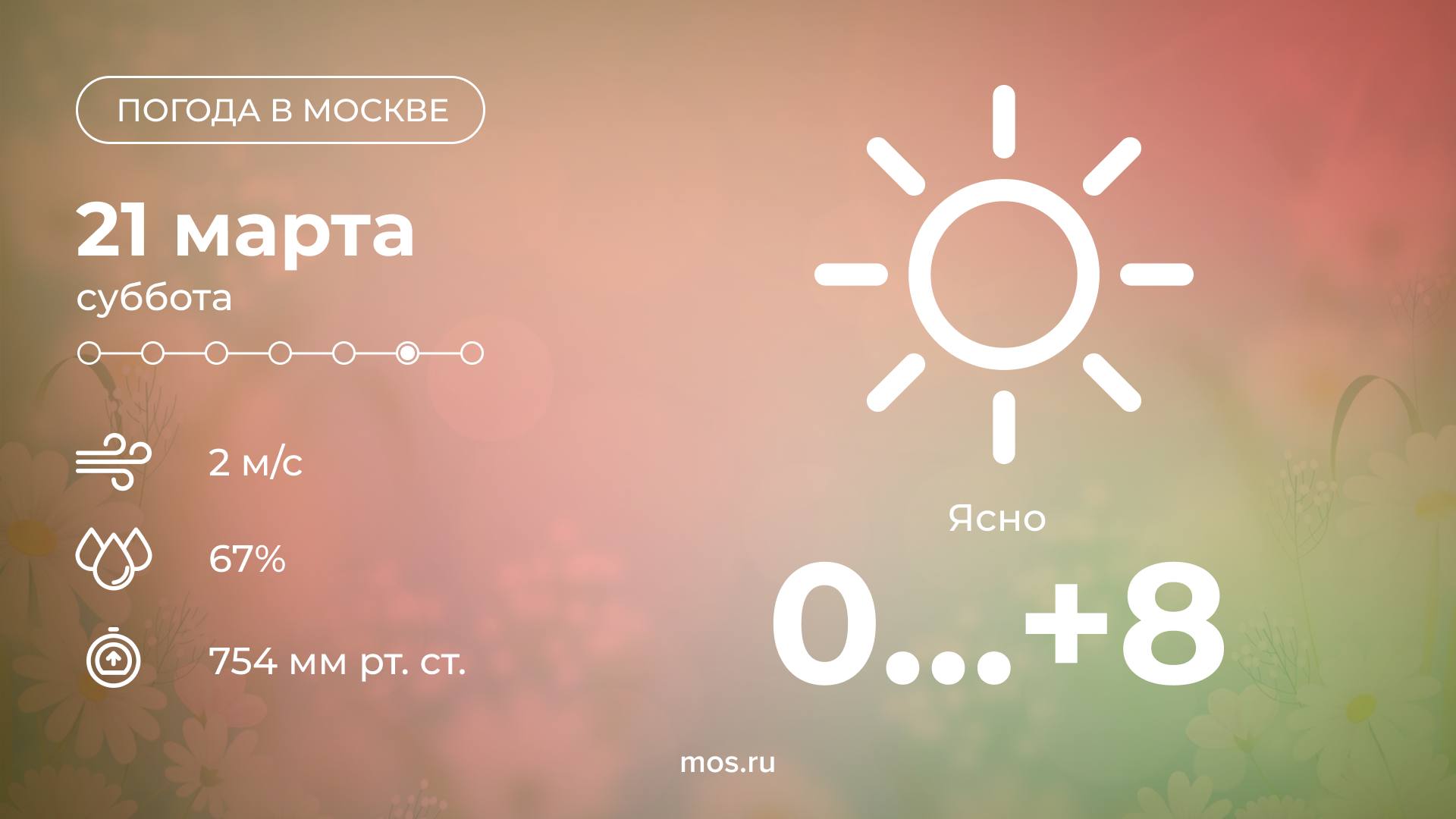Сегодня в столице ожидается ясная погода. Столбики термометров покажут от 0 до +8 °С.