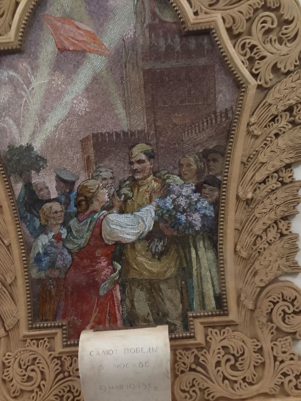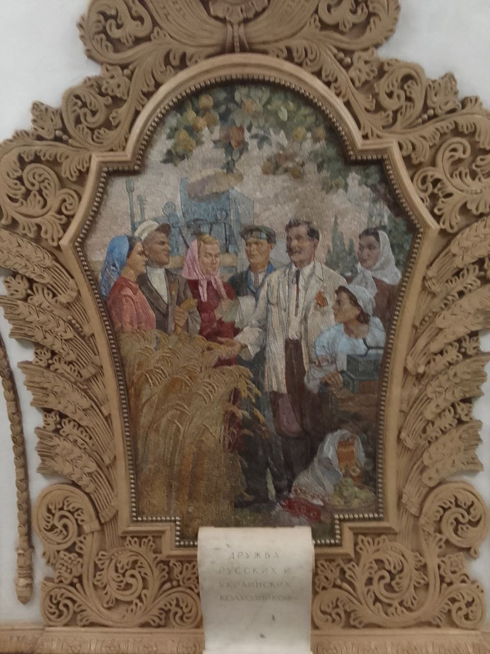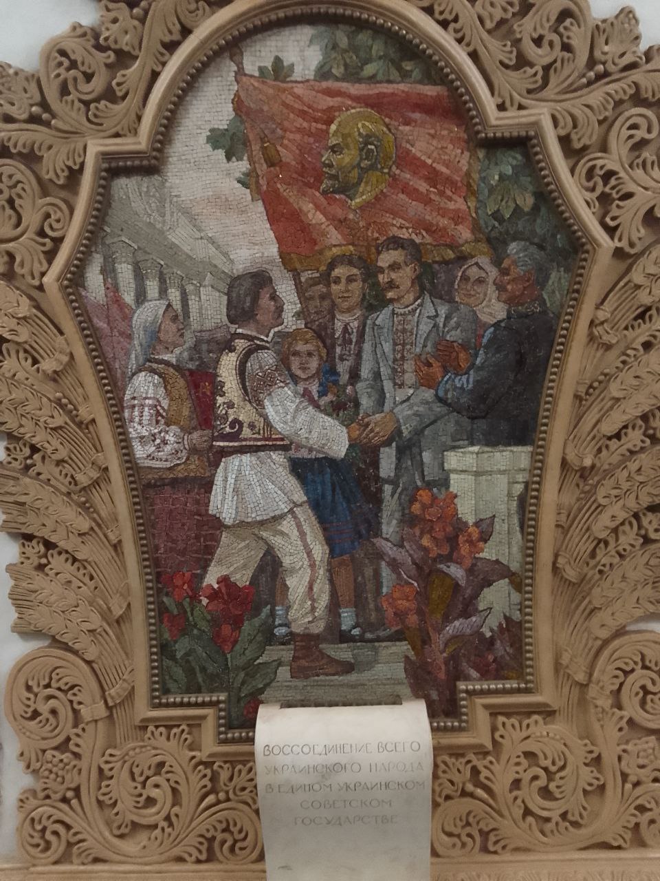 Мозаичные панно информируют пассажиров о том, как цветёт братская социалистическая славная Украина .