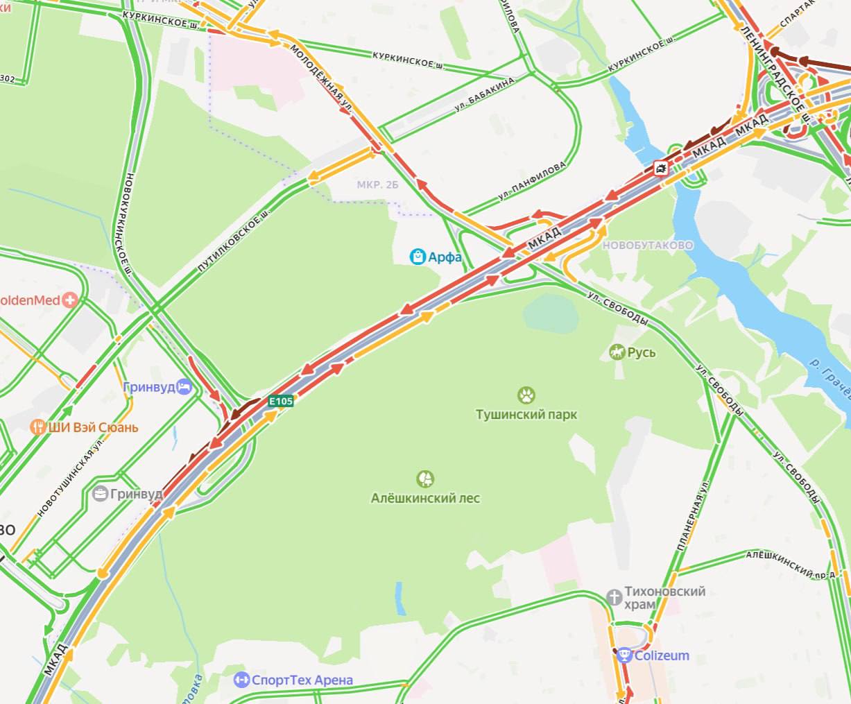 Движение в районе аварии сильно затруднено, на месте работают экстренные службы.