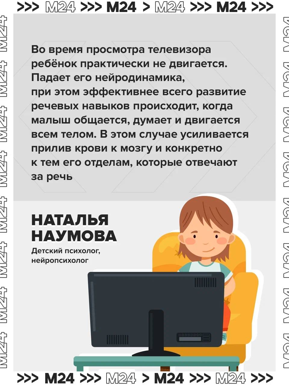 Как объяснила «Москве 24» детский психолог Наталья Наумова, просмотр контента не требует задействования речевого аппарата. Поэтому до четырёх лет стоит вовсе обходиться без гаджетов и телевизора.