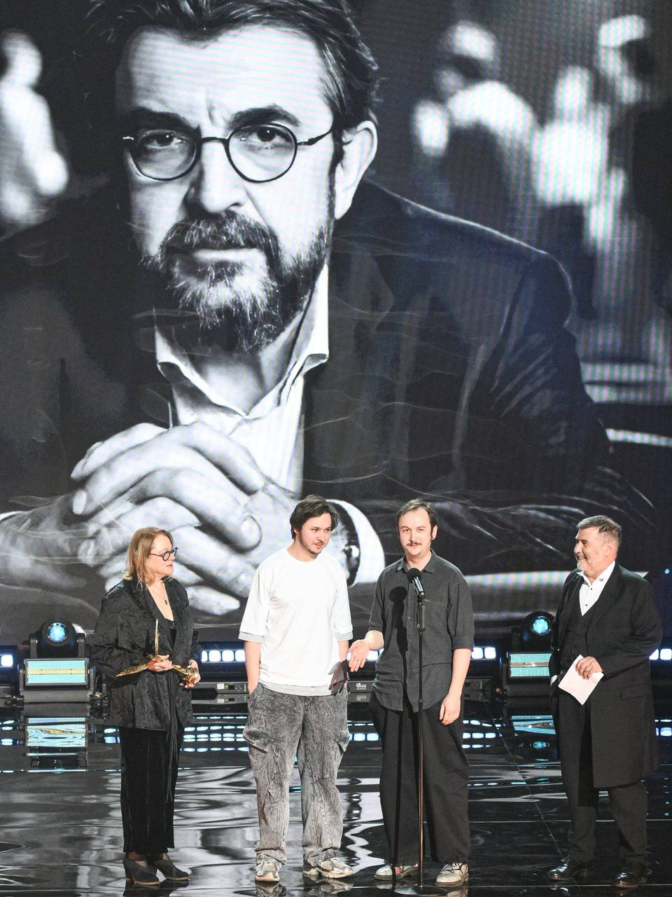 Игорь Золотовицкий — легенда театральной Москвы — посмертно отмечен премией «Ника» за особый вклад в развитие образования. За наградой на сцену вышли вдова — Вера Харыбина и сыновья — Алексей и Александр.