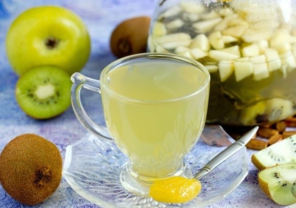Зелёный чай с киви, яблоком и мёдом готов! Пусть этот легкий и освежающий напиток станет вашим любимым!