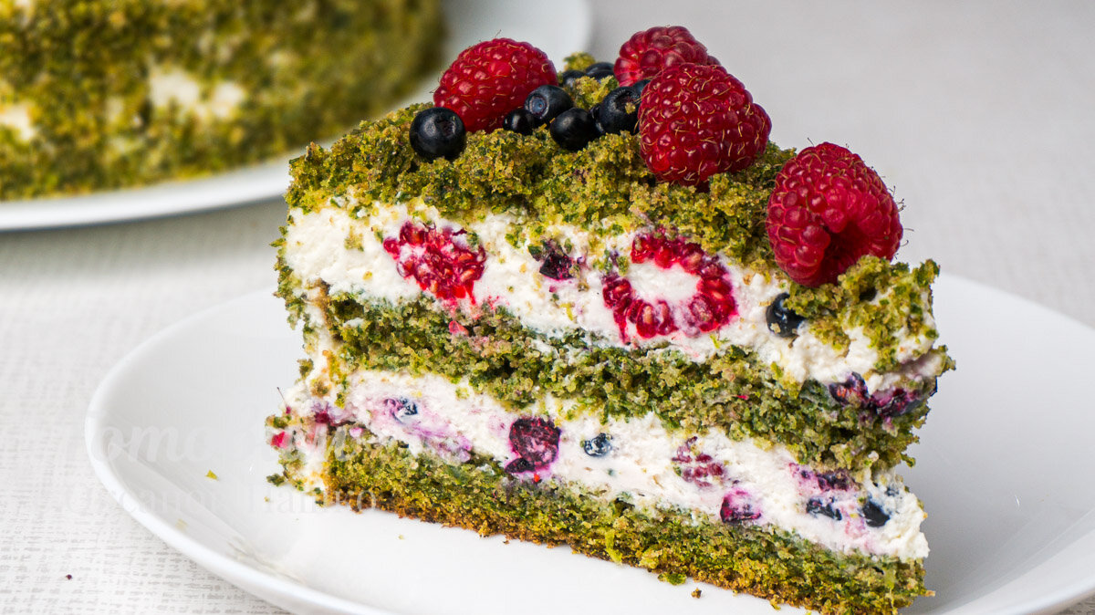 Торт лесной мох, пришедший к нам из Польши, покоряет сердца своей яркой зеленой окраской коржей. И что самое интересное, этот насыщенный цвет достигается без использования химических красителей.