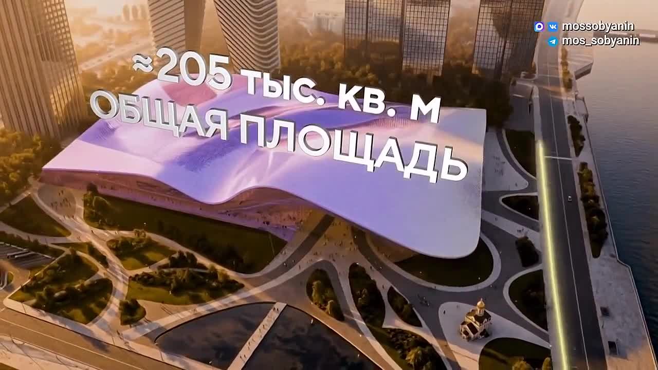 Это будет крупное общественное пространство – новых точка притяжения и важный символ современной России. Ставка на открытость и лёгкость: много света, воздуха, продуманная архитектура. Среди ключевых решений – уникальная самонесущая кровля площадью около 60 тысяч квадратных метров и мультимедийный фасад. Центр сможет одновременно принимать до 20 тысяч человек.
