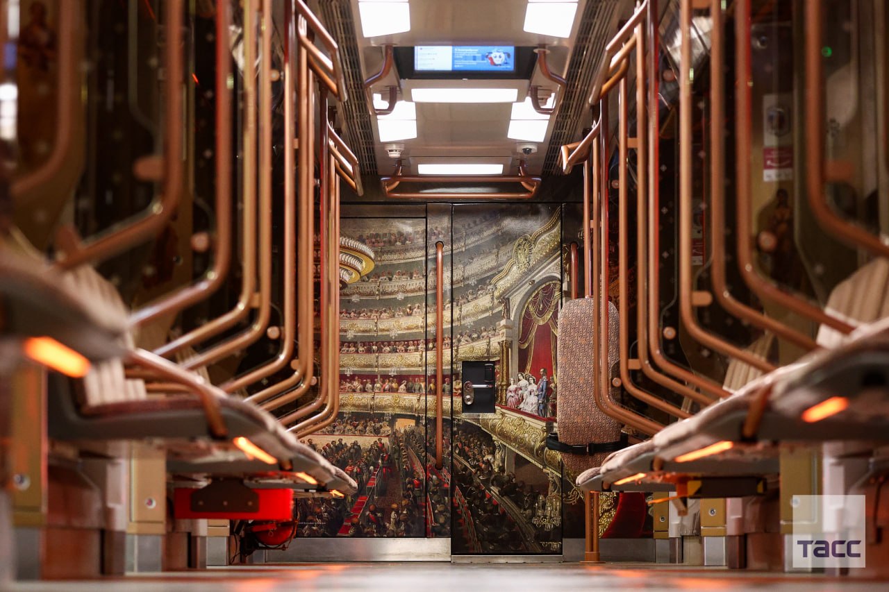 На Кольцевой линии метро запустили тематический поезд в честь 250-летия Большого театра, передает корреспондент ТАСС.