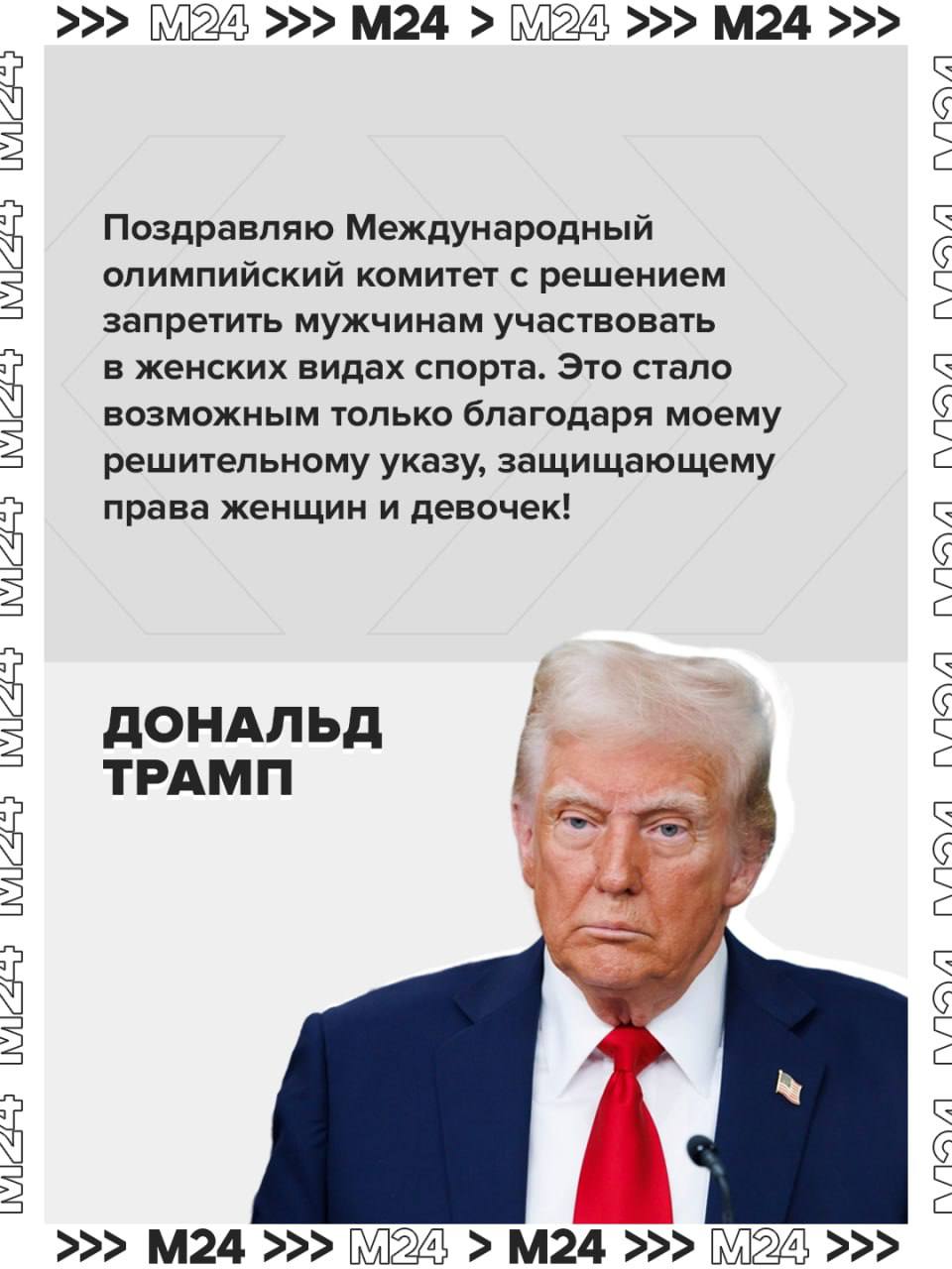 Так это или нет, но ещё в феврале прошлого года президент США говорил, что не допустит трансгендеров* к участию в Олимпиаде-2028 в Лос-Анджелесе. Позже он подписал соответствующий указ.