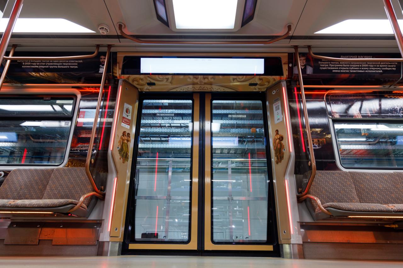 Состав будет курсировать по Кольцевой линии. Внутри вагонов — целая история театра: ключевые вехи легендарной сцены, знаменитые постановки и портреты выдающихся деятелей искусства. Пассажиры также смогут заглянуть «за кулисы» и узнать, как устроена жизнь театра изнутри.