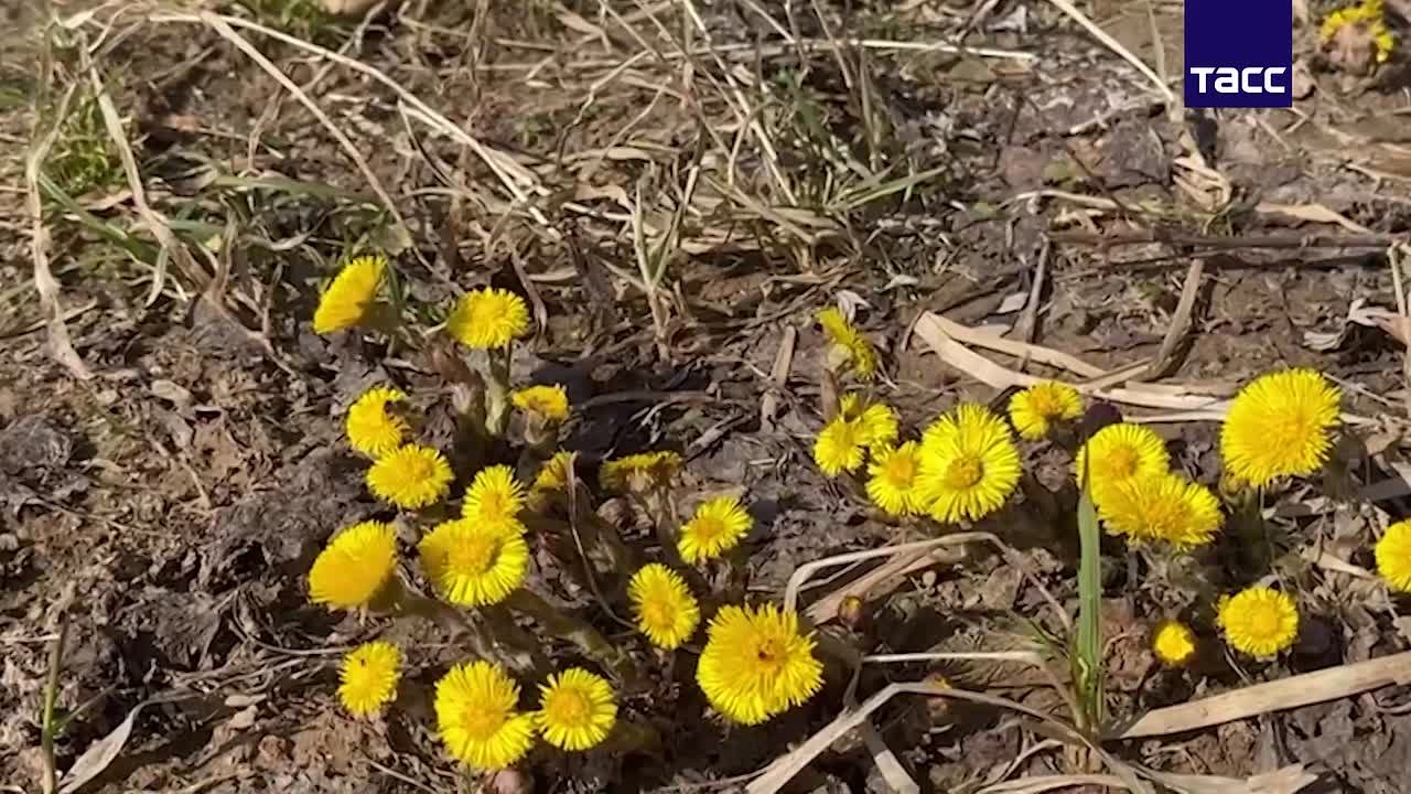 Цветы мать-и-мачехи на прогретых солнцем опушках в Подмосковье.