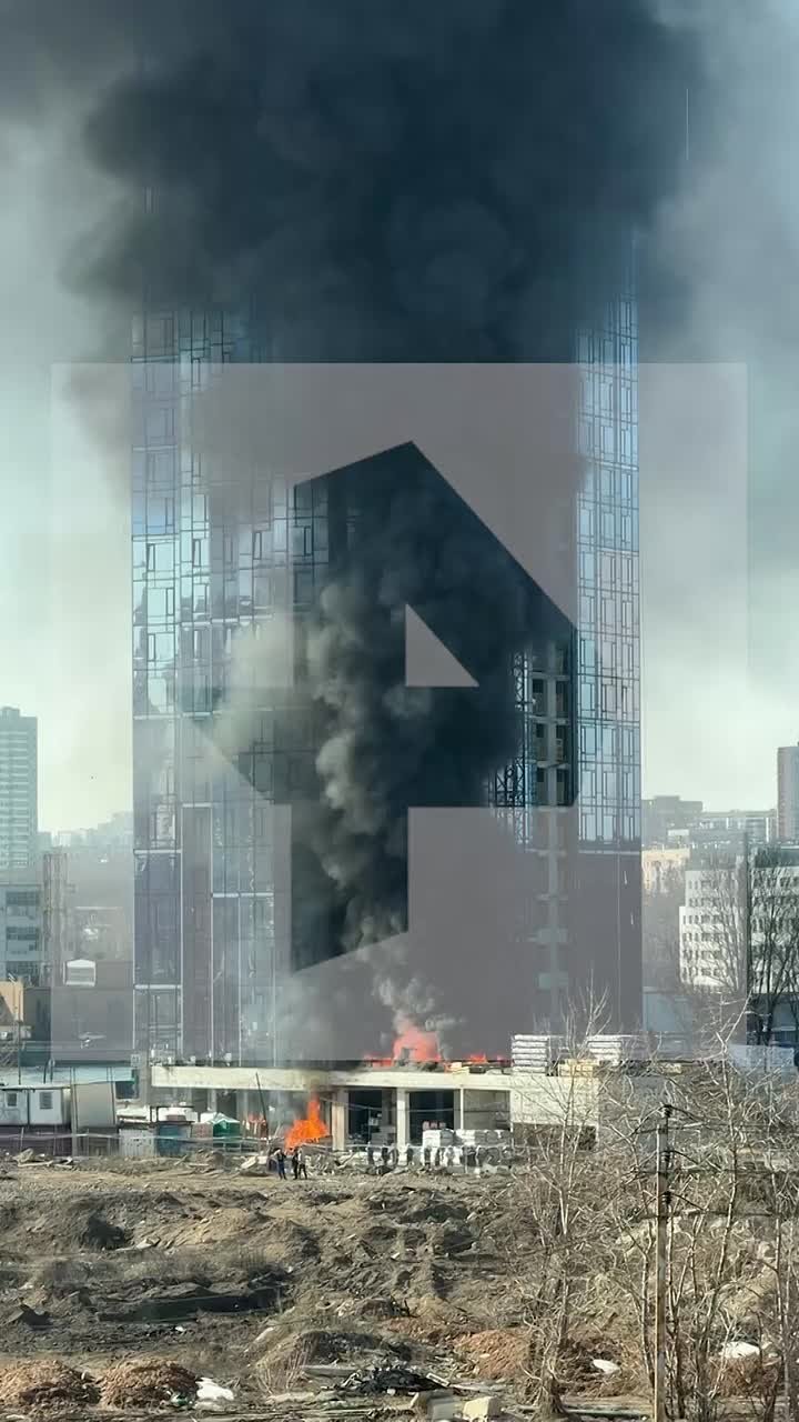 На кадрах видны огромные клубы черного дыма, стремящиеся вверх.