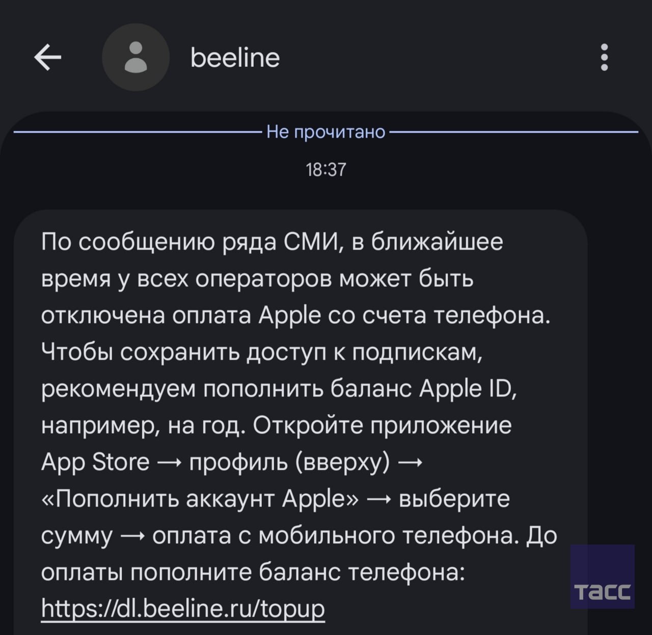 "Билайн" и МТС предупредили о возможном отключении оплаты сервисов Apple со счета телефона. В этом убедился корреспондент ТАСС.