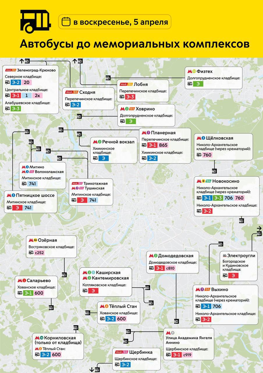 5 апреля в Вербное воскресенье Москва запускает автобусы-экспрессы до 14 городских кладбищ.