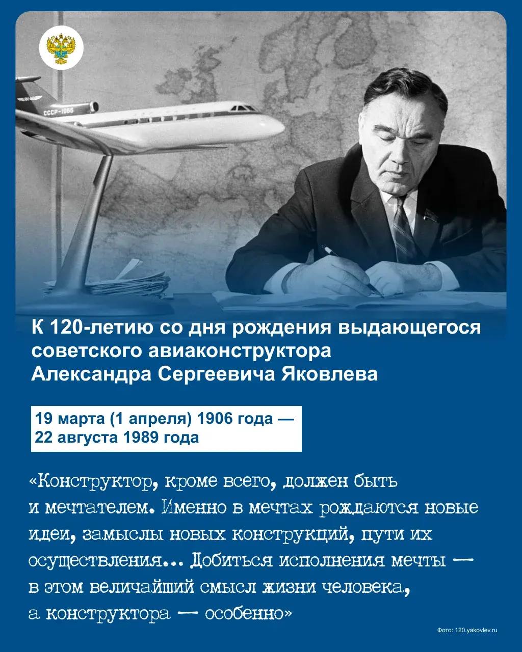 В день рождения авиаконструктора рассказываем о знаковых разработках, выполненных под его руководством и делимся цитатами из книги Александра Сергеевича Яковлева «Цель жизни. Записки авиаконструктора»
