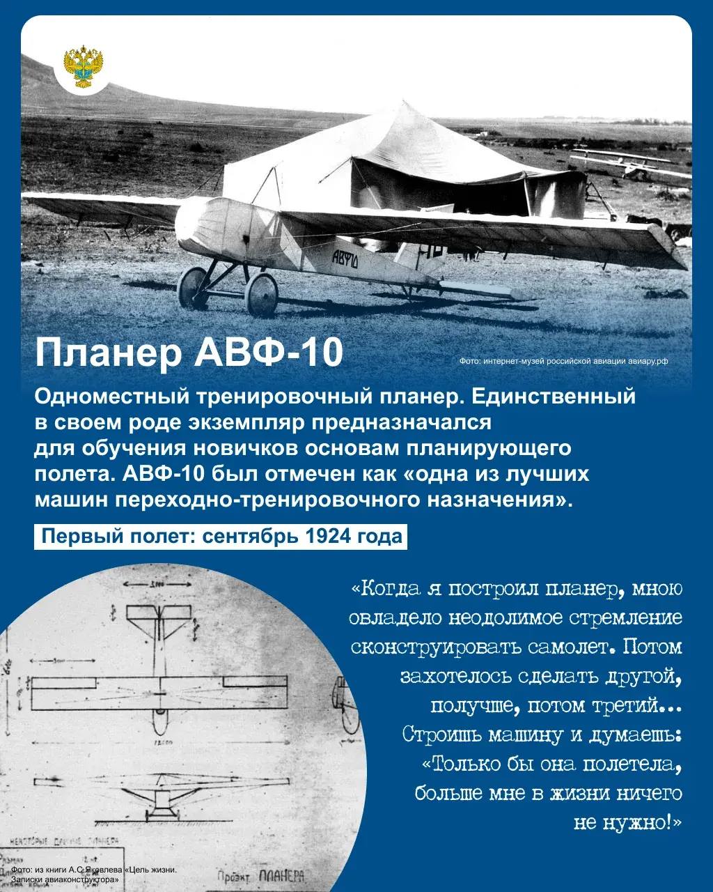 Уже в 18 лет он построил свой первый тренировочный планер АВФ-10, а в 21 год — первый легкий самолет АИР-1.