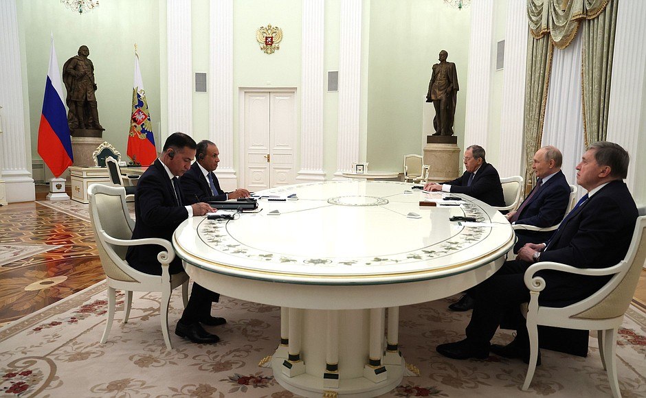 В Кремле прошли переговоры Президента Российской Федерации В.В.Путина с Министром иностранных дел, международного сотрудничества и по вопросам египтян за рубежом Арабской Республики Египет Б.Абдельати(2 апреля 2026 года)