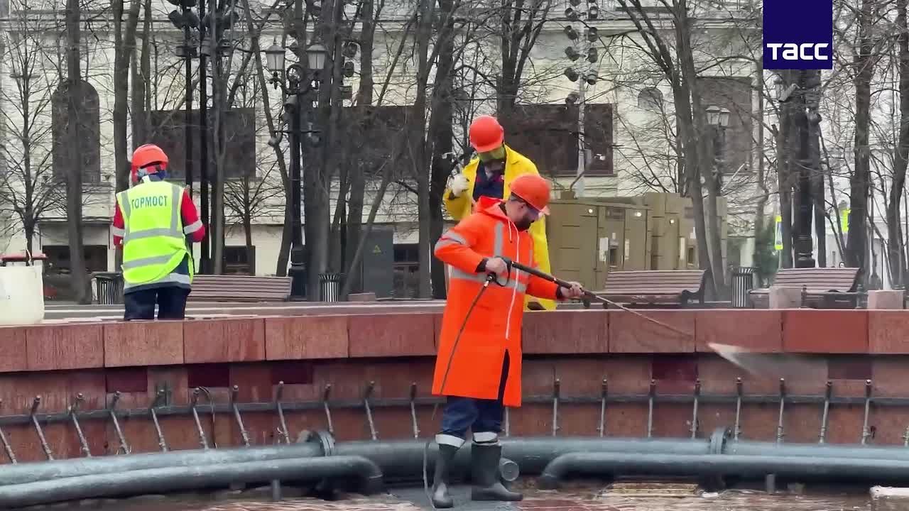 Фонтаны на Пушкинской площади и в Новопушкинском сквере промыли перед запуском, сообщил заммэра Москвы Петр Бирюков.